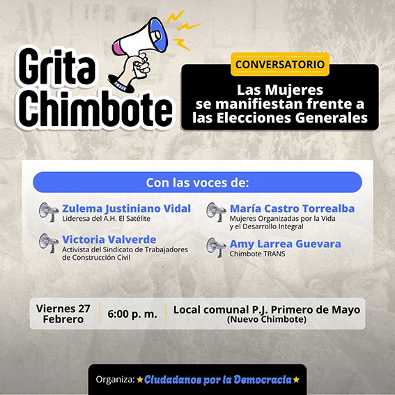 La actividad se realizará a las 6:00 de la tarde en el local comunal del pueblo joven Primero de Mayo, en Nuevo Chimbote, donde se espera congregar a vecinos, dirigentes y público interesado en participar del espacio de diálogo.