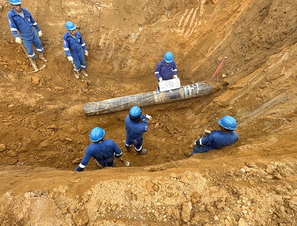 Según el último reporte, tras las excavaciones, los dos extremos de la tubería de líquidos han sido liberados para su intervención, lo que permitirá el uso de maquinaria para acelerar los trabajos.