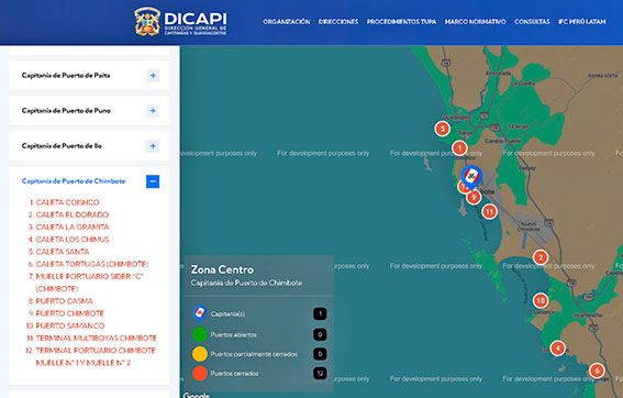 También están cerraos el Terminal Portuario de Chimbote, el muelle de Siderperú y el Terminal Multiboyas.
