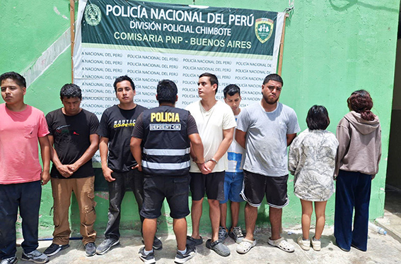 Los intervenidos fueron identificados como Stephano Yampierre Gordillo Chávarri (23), Dyogo Morales Vidal (20), Gerson Bryan Casana Rodríguez (29), alias “Gerson”; Bruno Alexis Periche Montejo (30), Geen Alexander Juárez Zavaleta (26) y Kevin Darwin Casana Aguirre (30).