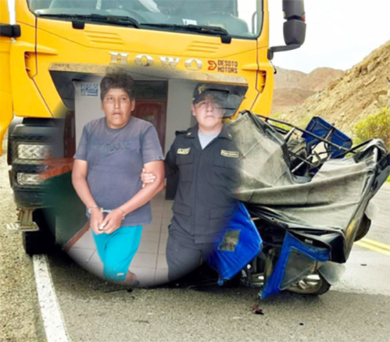El siniestro involucró a un volquete de la distribuidora Pizarro EIRL y una motokar azul de placa NRR-1827. Producto del fuerte impacto, el conductor del vehículo menor falleció de manera instantánea.