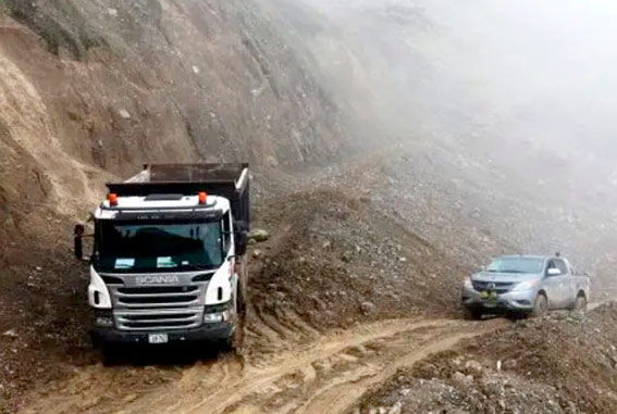 En la Carretera Longitudinal de la Sierra Norte, el tramo Huánuco – Ambo – Conchamarca sufre de restricción del tránsito de vehículos debido a un deslizamiento de lodo y piedras.