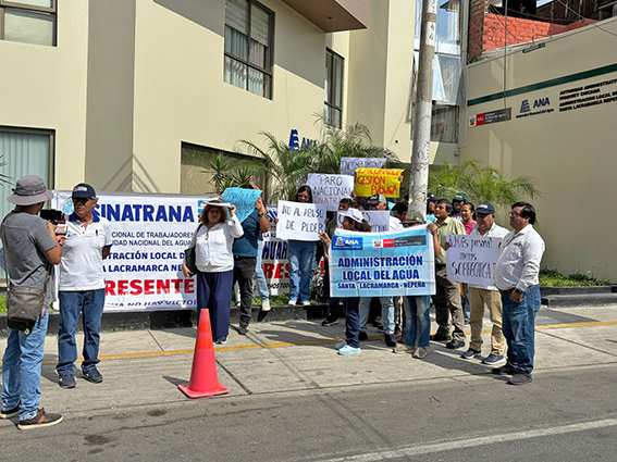Trabajadores de la Autoridad Local del Agua y de la Autoridad Administrativa del Agua acataron ayer lunes un paro de 24 horas en Nuevo Chimbote para exigir el cumplimiento de sus derechos laborales.