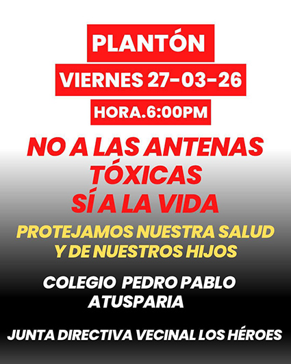 Como parte de estas acciones, padres y vecinos convocaron a un plantón para hoy viernes 27 de marzo a las 6:00 de la tarde, con el objetivo de exigir la paralización del proyecto y defender la salud de la comunidad educativa.
