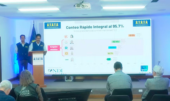 «Esta superposición indica la existencia de un empate técnico, por lo que, con la información disponible hasta este momento, no es posible determinar cuál es la candidatura de estas que ocuparía el segundo lugar y pasaría a una segunda vuelta en junio. En ese contexto, sería necesario esperar con calma, con paciencia, los resultados oficiales para definir cuál de estos candidatos acompañará a la candidata Fujimori en la segunda vuelta», añadió.