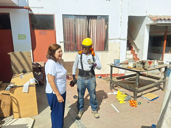 La directora de la Unidad de Gestión Educativa Local del Santa, Romy Saldaña Távara, realizó una visita de supervisión a uno de los ambientes facilitados por la Universidad Católica Los Ángeles de Chimbote, destinados a albergar temporalmente a los estudiantes de la institución educativa Inmaculada de la Merced.