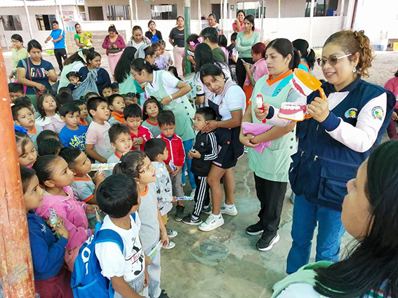 En el marco del Día Nacional de la Protección Bucal Infantil, la Red Pacífico Sur, realizó una jornada preventiva en la I.E. inicial del A.H. Villa El Salvador en Nuevo Chimbote, donde se entregaron kits de aseo bucal a los niños a quienes les enseñaron a cepillarse los dientes.