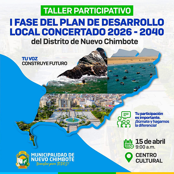 El Taller Participativo se realizará hoy 15 de abril a las 9:00 de la mañana en el Centro Cultural de Nuevo Chimbote, donde se espera la asistencia de diversos actores sociales comprometidos con el desarrollo local.