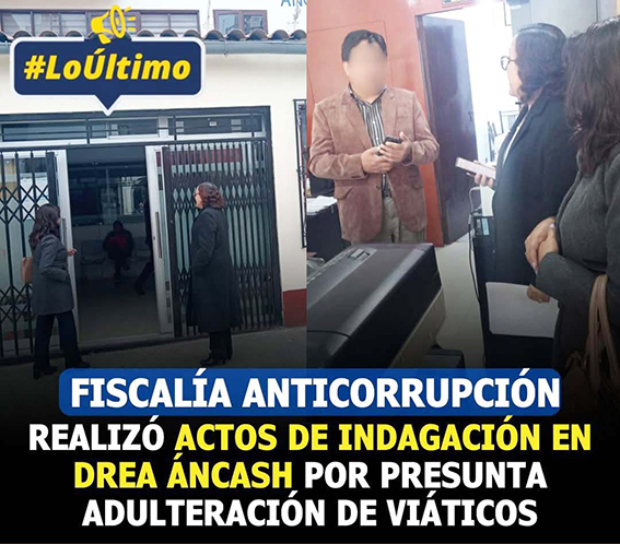 La Fiscalía Anticorrupción de Áncash realizó una intervención de urgencia en la Dirección Regional de Educación de Áncash (DREA), ante denuncias por un presunto manejo irregular en el pago de viáticos.