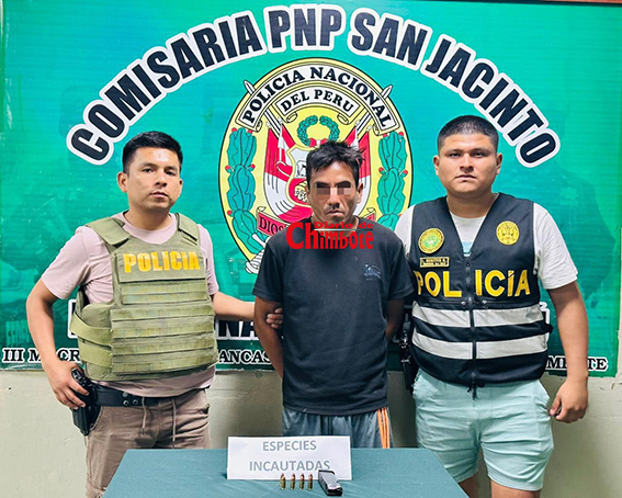 Durante el registro del inmueble del intervenido, ubicado en el asentamiento humano Nuevo San Juan, la policía halló evidencias contundentes: una cacerina abastecida y municiones calibre 9 mm.