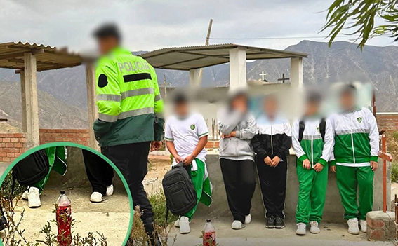 Cinco estudiantes menores de edad tres varones y dos mujeres fueron intervenidos por personal de Serenazgo cuando consumían bebidas alcohólicas en el cementerio municipal de Pariacoto.
