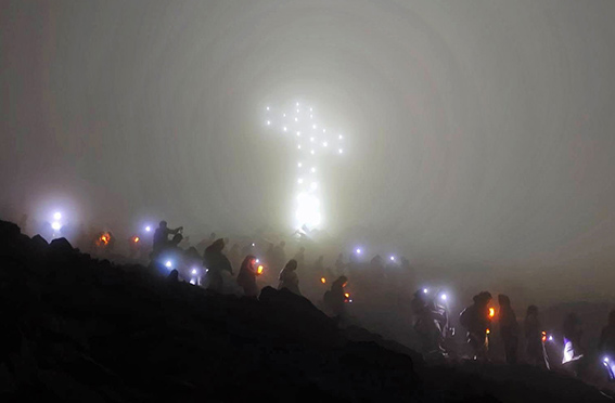 Posteriormente, los asistentes ascendieron hasta la cima del cerro, donde presenciaron el encendido de la Cruz de la Paz, que volvió a brillar como un faro de esperanza para todos los chimbotanos, reafirmando la identidad, la fortaleza y la capacidad de la ciudad para sobreponerse ante la adversidad.