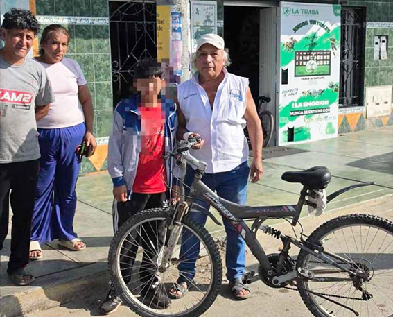 Los padres de un menor de 16 años que había sustraído una bicicleta decidieron devolver el objeto y ofrecer disculpas públicas al propietario, en un hecho ocurrido en la urbanización El Carmen, en la ciudad de Chimbote.