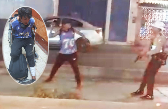Pese a las reiteradas advertencias verbales del efectivo policial, el agresor intentó atacarlo con el arma blanca, obligando al agente a hacer uso progresivo de la fuerza.